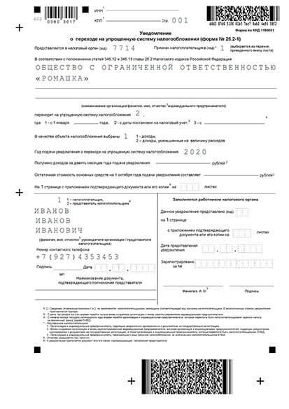 - Уведомление о переходе на УСН если выбрали упрощённую систему налогообложения