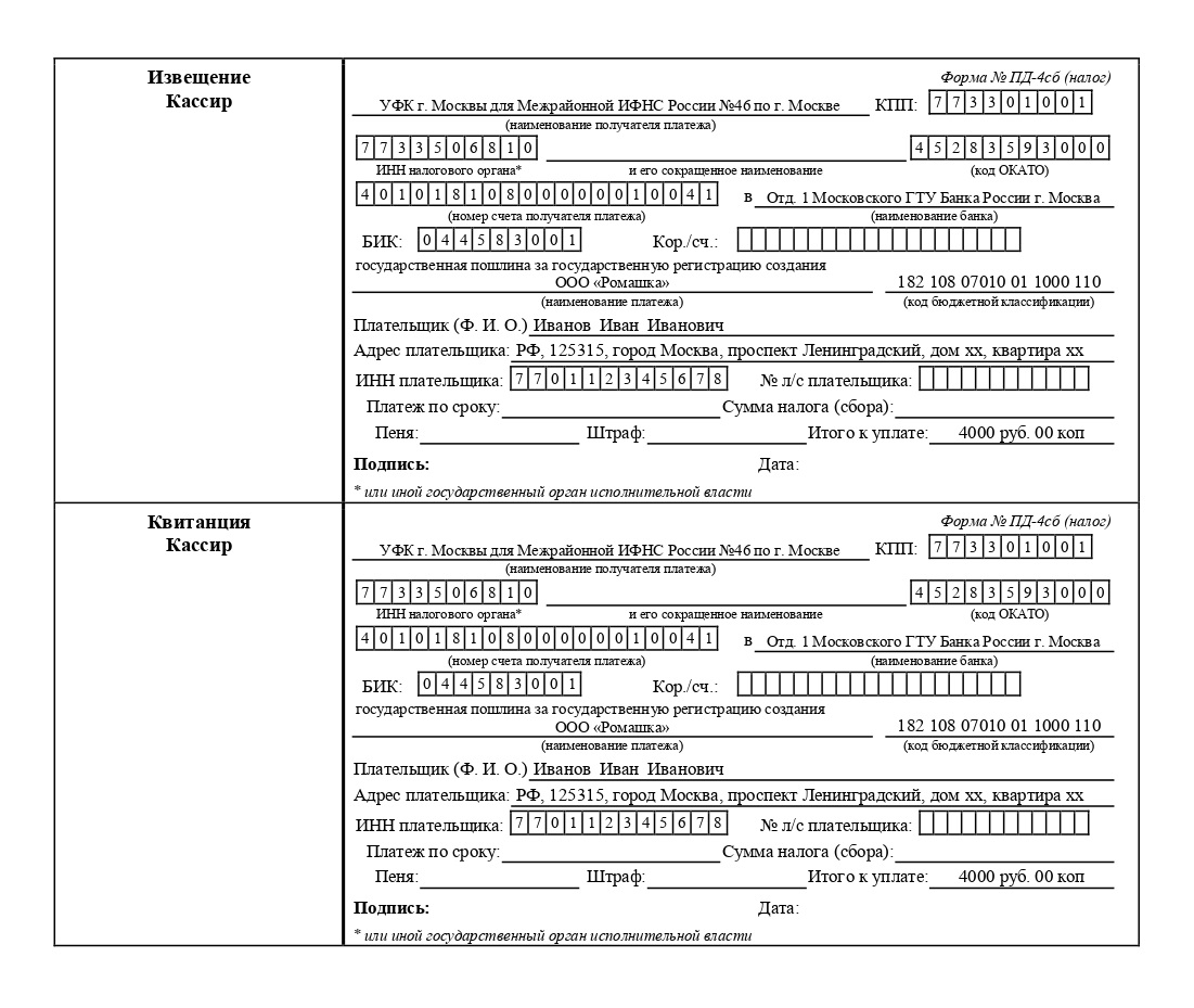 За регистрацию ООО необходимо заплатить госпошлину в размере 4000 рублей одним из способов: