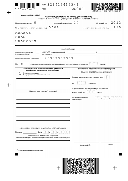 Образец заполненной декларации за 2022 год для ИП на УСН 15% от разницы между доходами и расходами: