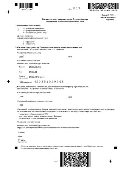 Лист И для бывшего руководителя заполняется так: на странице 1 листа И в пункте 1 "Причина внесения сведений" нужно написать цифру "2", что означает "Прекращение полномочий". После этого впишите данные старого директора в раздел 2 под названием "Сведения, содержащиеся в ЕГРЮЛ". Больше о прежнем директоре ничего заполнять не нужно.