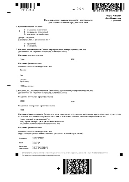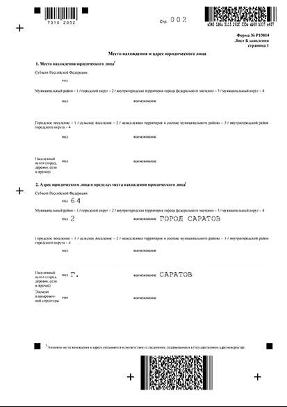 Бланк заявления Р13014 для внесения изменений в сведения об ООО