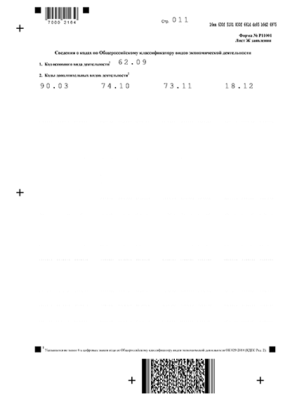 Этот лист должен содержать сведения о видах деятельности (кодах ОКВЭД). Основным может быть только один код ОКВЭД. Количество дополнительных кодов не ограничено. Указывать лучше только те виды деятельности, по которым ООО действительно планирует работать.