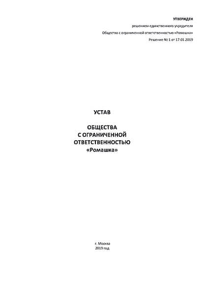 Устав - основной документ общества с ограниченной ответственностью, в котором прописывают все, что касается деятельности компании, от названия до порядка распоряжения имуществом. Он нужен как для самого Общества для определения порядка его работы, руководства, внутренних процессов, финансовых нюансов, так и для регистрации в инспекции.